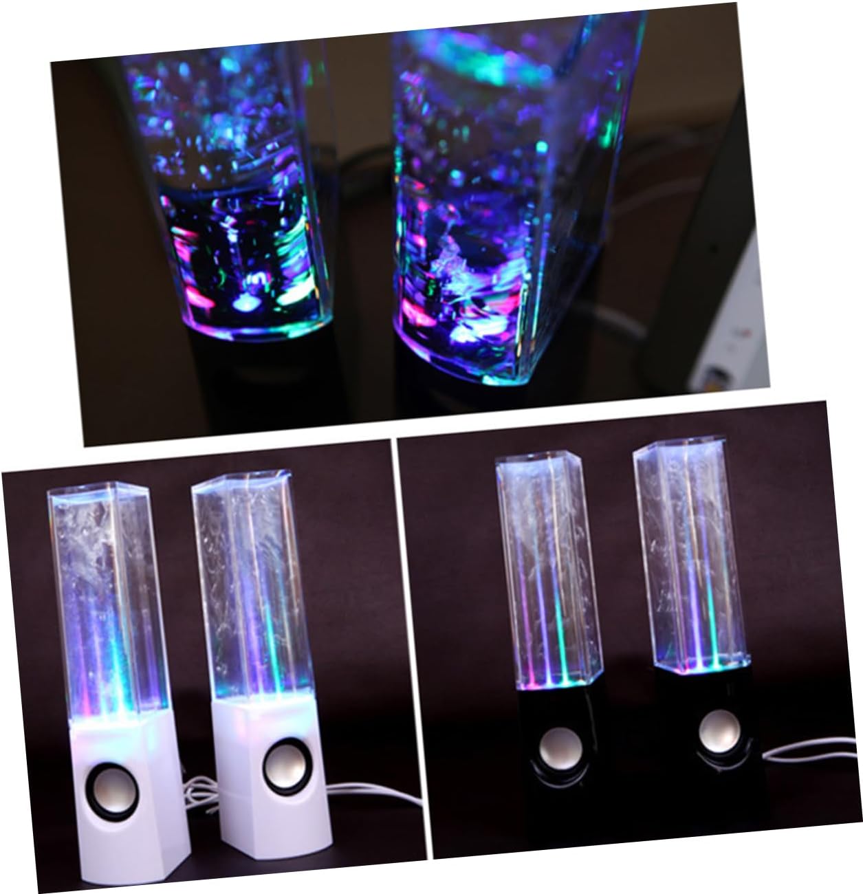 Package Include 1 x speaker Features - Color: Black speaker - Size: 5.1 x 6.3 x 22cm computer speaker - Material: ABS and acrylic - Different height for different tones, very fascinating wired speaker. - 2 x 3W high definition speaker, easy to create stereo sound effect music fountain. - Built-in colorful LED lights and water fountain, fountain effect, perfect for home, party, picnic or any other activities fountain speaker. - Suitable for devices with 3.5mm ports, such as, phone, PC, tablet, laptop, and etc.Goods Descriptionfountain speaker This wonderful speaker is a good partner for you.music fountain Built-in colorful LED lights and water fountain, fountain effect, perfect for home, party, picnic or any other activities.wired speaker The speaker was made of plastic meterial, and at the same time, it has a outstanding appearance